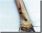 - ثقوب واضحه على ساق النبات غير متوى على سطح التربه